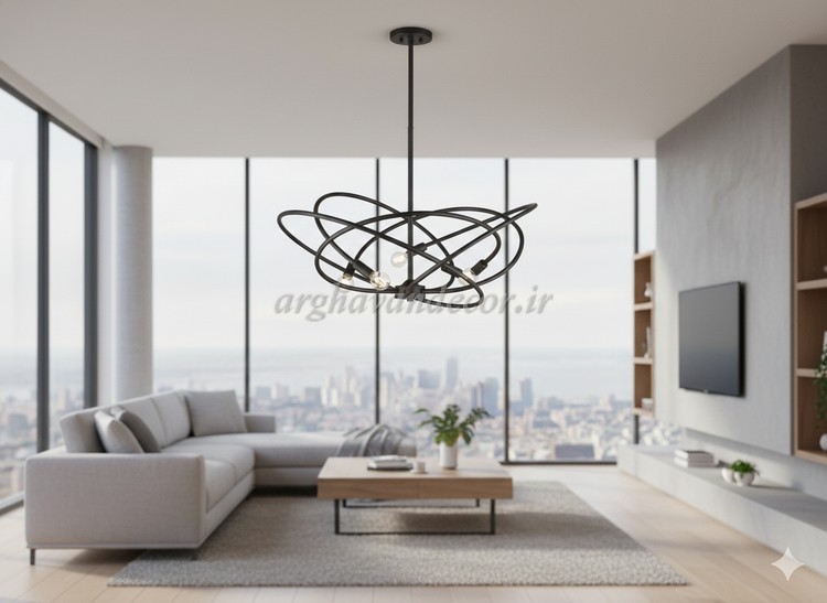 لوستر مدرن فلزی 5 شعله طراحی مینیمال و شیک A124