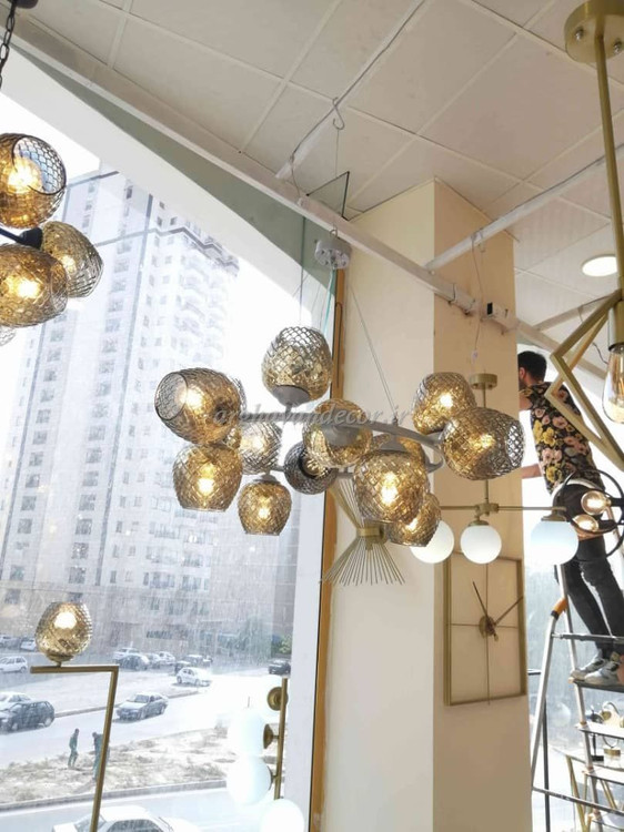 لوستر مدرن فلزی 20 شعله طراحی خاص و ابری A139