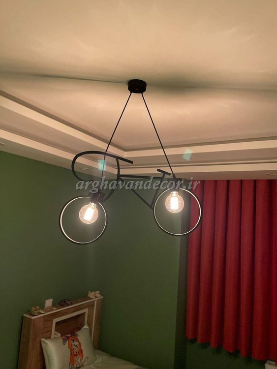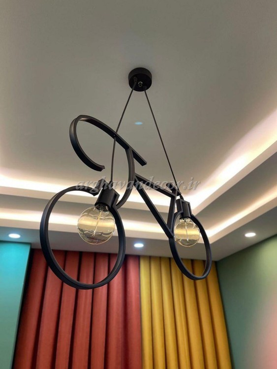 لوستر مدرن فلزی 2 شعله طراحی خاص دوچرخه ای و شیک A147